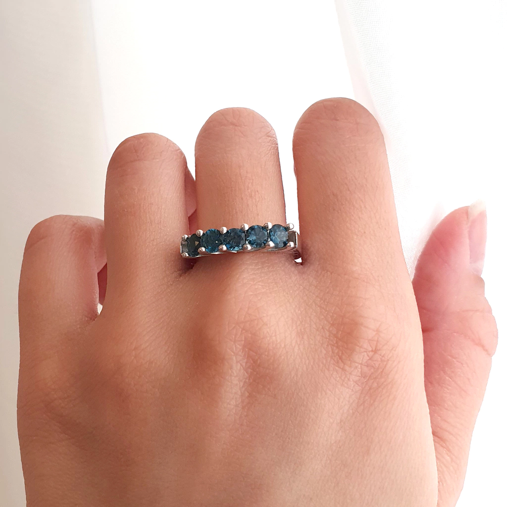 Anel Boreale Prata 925 Meia Aliança Topázios London