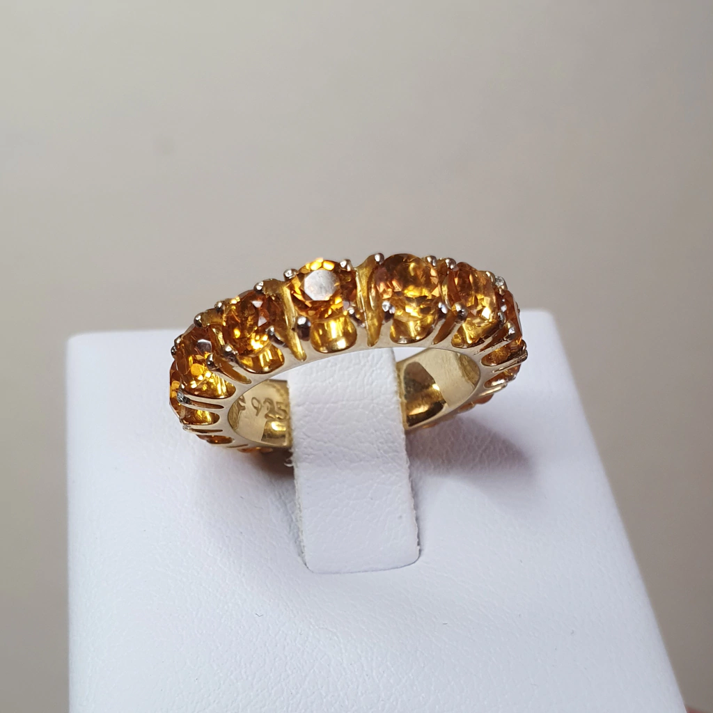 Anel em Prata 925 aliança inteira com citrinos amarelos naturais redondos
