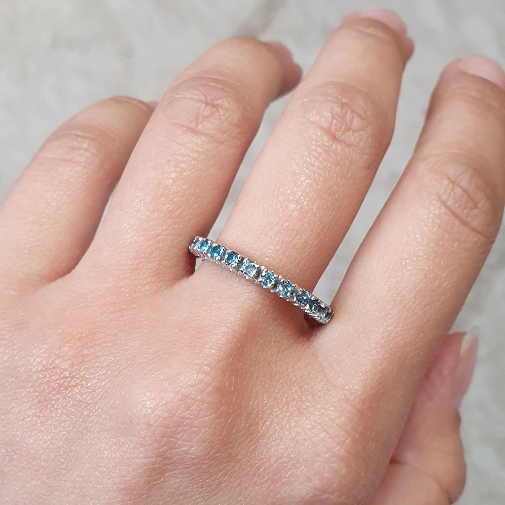 Anel em Prata 925 aliança inteira com topázios London naturais redondos