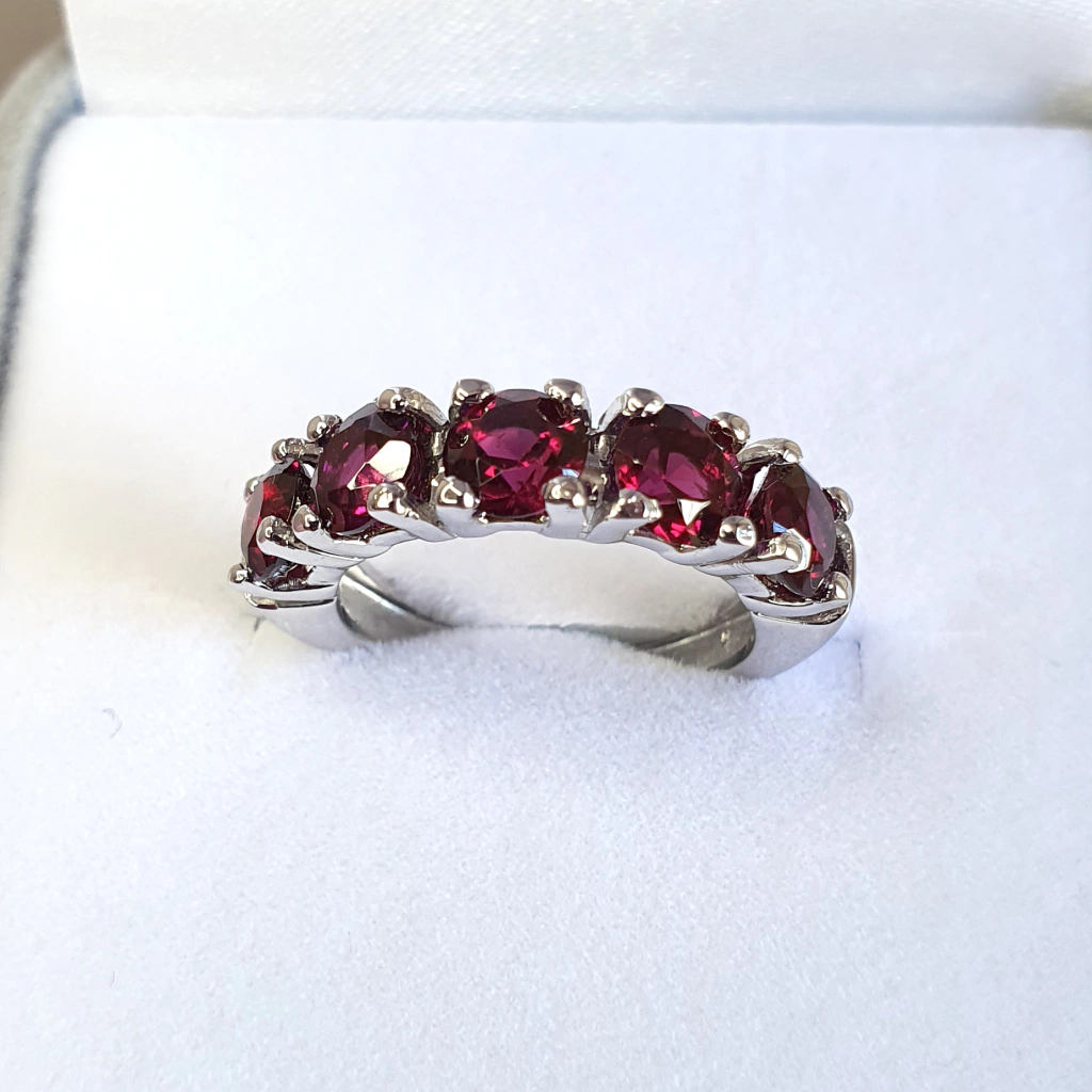 Anel em Prata 925 meia aliança G com rodolitas naturais