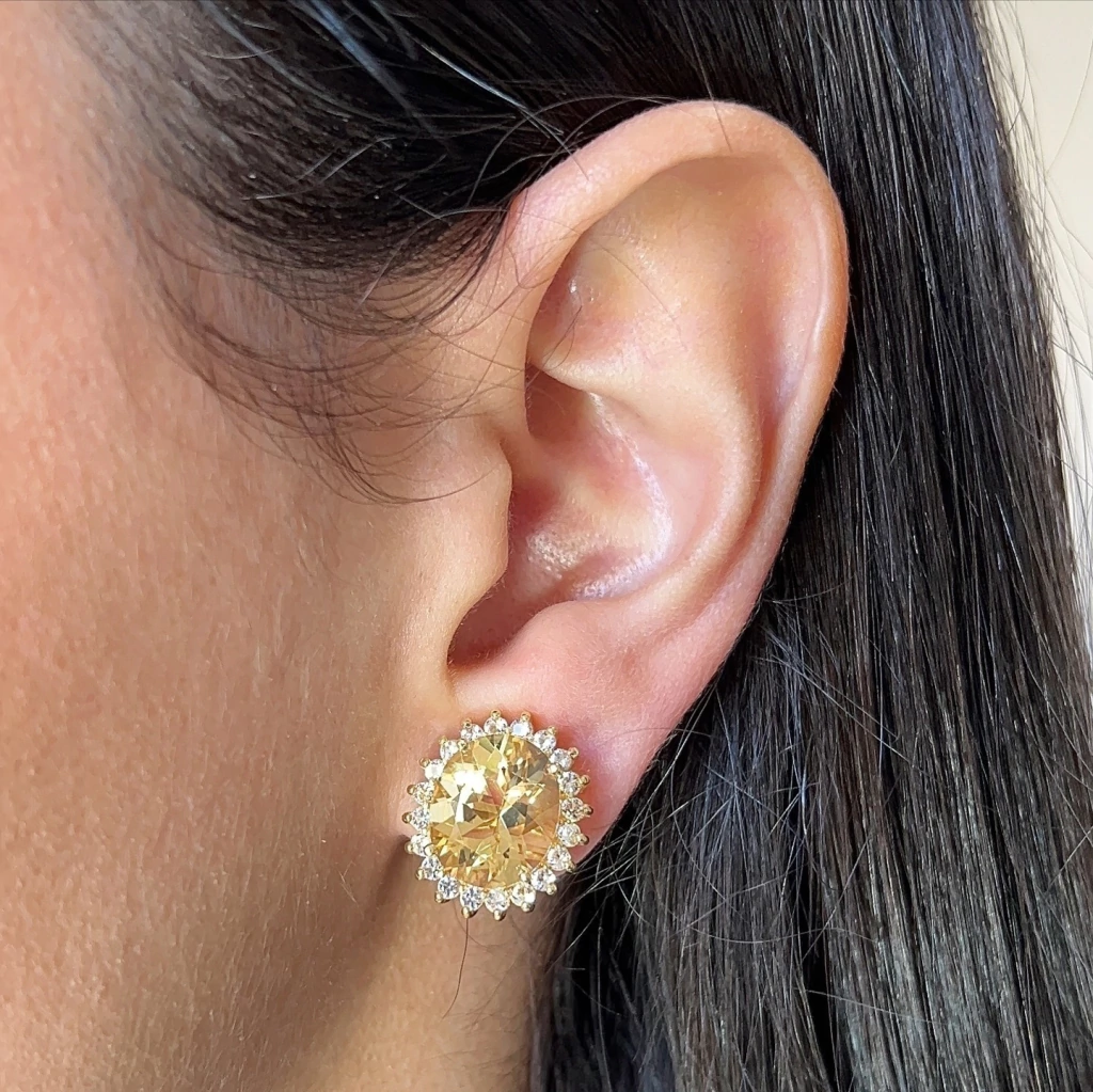 Brinco Prata 925 Oval G Citrino e Topázios Incolores