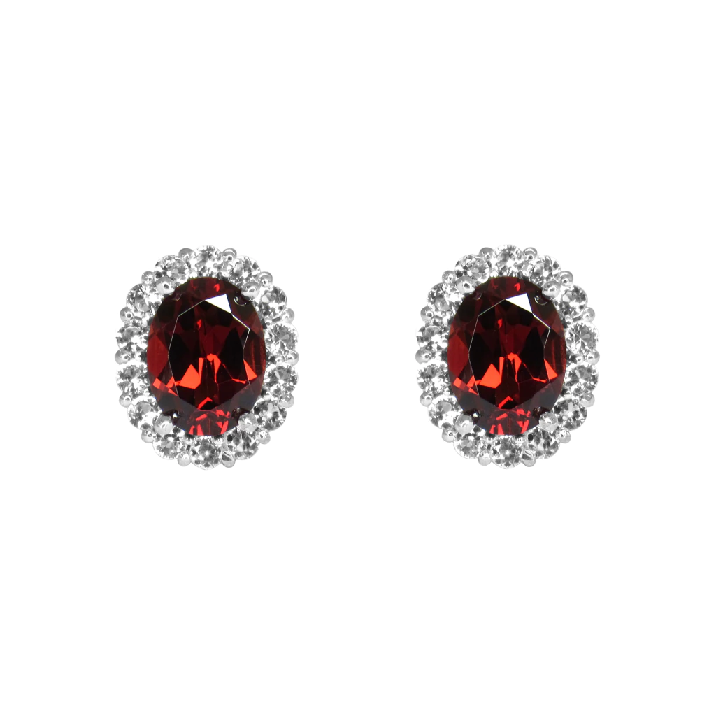 Brinco Prata 925 Oval Granada e Topázios Incolores