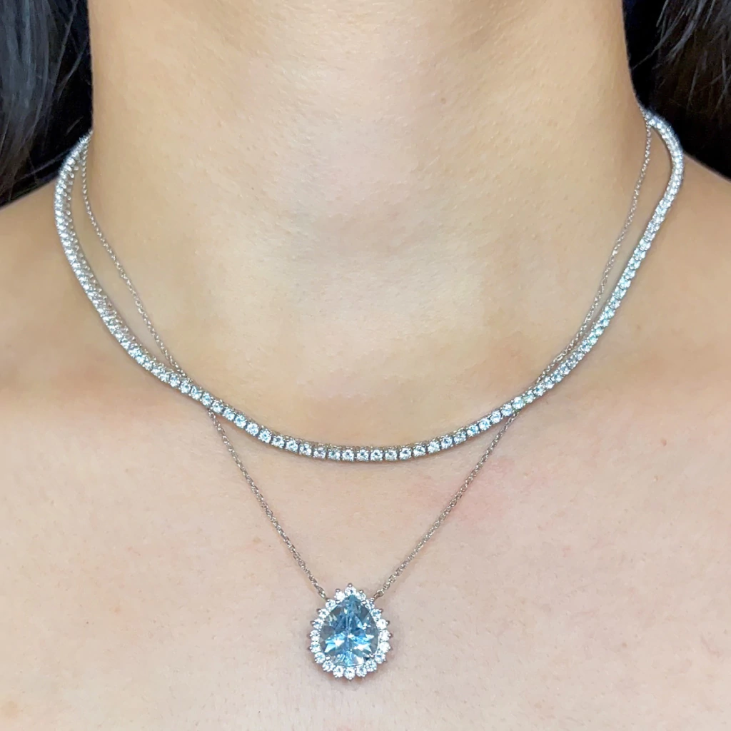 Colar Prata 925 Gota G Topázio Sky e Topázios Incolores