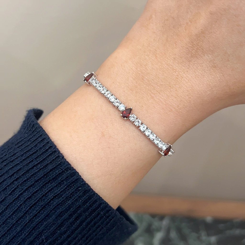 Pulseira Prata 925 Riviera Topázios Incolores + Gotinhas